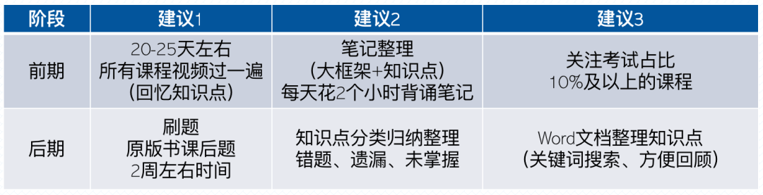第一阶段主要是整理知识点。在寒假期间我参与了高顿的打卡计划,利用一个月时间将网课全部刷了一遍,并自己整理了一份笔记,这也为之后的复习奠定了很好的基础。在梳理完知识点后,通过往年的原版课后题去检验自己对知识的掌握程度。在第一遍复习时,有很多知识我是记忆不太深刻的,随着后面不断对笔记的浏览背诵,会对有些不懂的知识点豁然开朗。在这里我的建议是,一定要自己去整理一份笔记,后期修改、补充、查找知识都会很方便。以前上课时我也会在讲义上圈一些重点,但在复习时翻看讲义再去做题效率会很低,查找知识点也会相应比较麻烦。