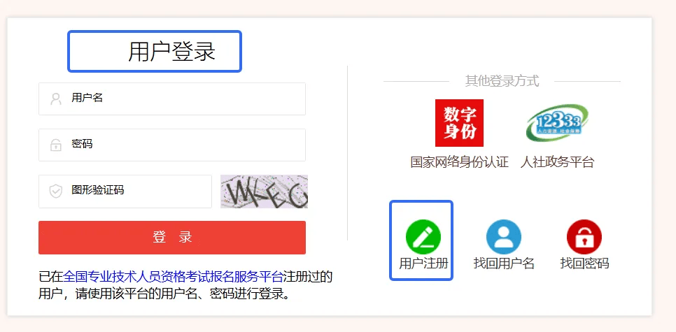 未注册:点击【用户注册】按钮进行注册后登录,请使用取得证书时所用证件的证件号码进行注册。