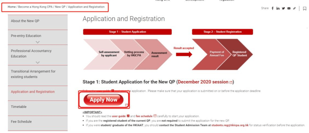 1、登录账号找到New QP申请和注册,点击“Apply Now”。