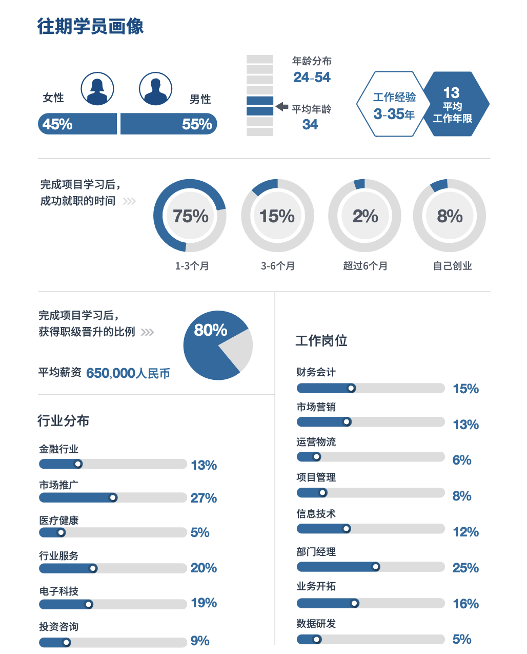 根据高顿在职研基于往期学员画像分析显示,75%的学员在完成项目后1-3个月内实现就业;80%获晋升的学员平均薪资达65万元。