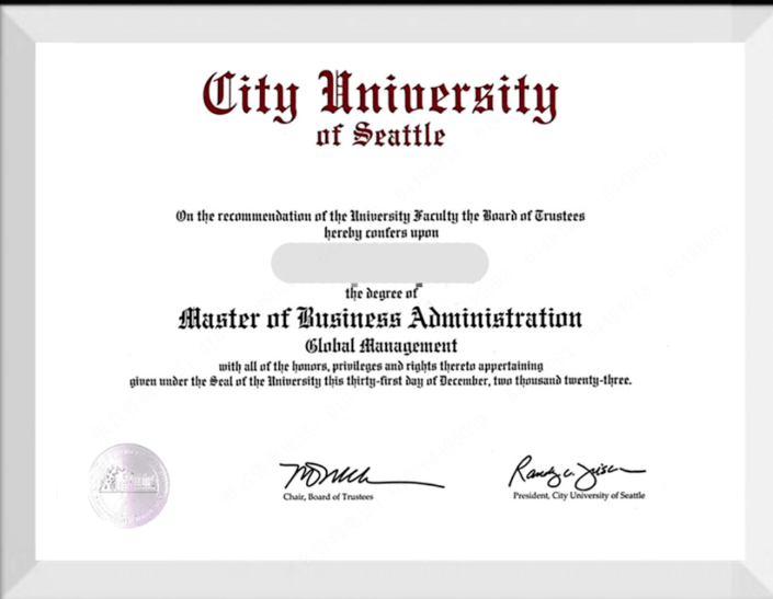 ●美国西雅图城市大学工商管理硕士学位证书