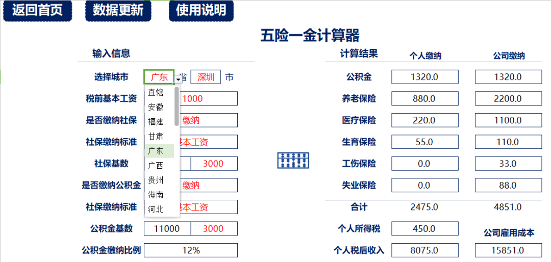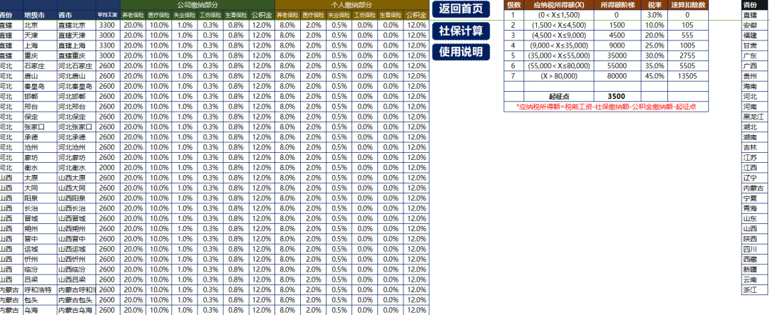 工资个税计算器,自动计算。 社保五险一金计算,各省城市可调,自动计算。 出入库系统,库存统计清晰,方便查询。