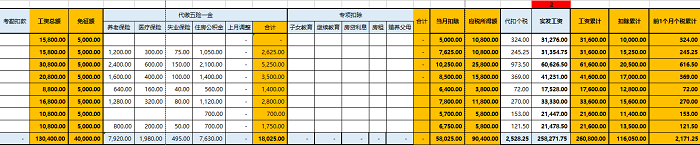 所以实战和经验是非常重要的,这也是你是否能够顺利入职晋升的关键。为了帮助大家跨过职业前期的坎,掌握职场必备实操技能。下面给大家准备了一套工资自动核算的资料包——包含一套全自动工作核算表.xls(19份),一份社保计算五险一金计算.xls,一份出入库管理系统.xls,预览如下:
