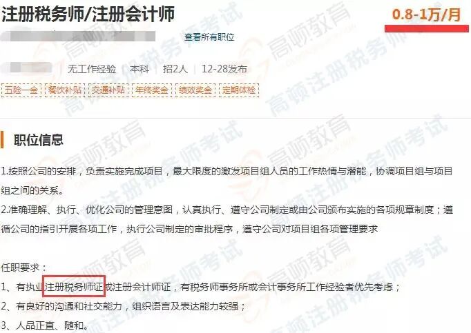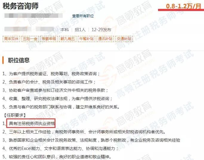 例如在招聘网站上可以发现,不少企业在招聘税务相关岗位的时候,如果你有税务师证书和相关工作经验,即使二本学历也有很大的机会能获得成功。