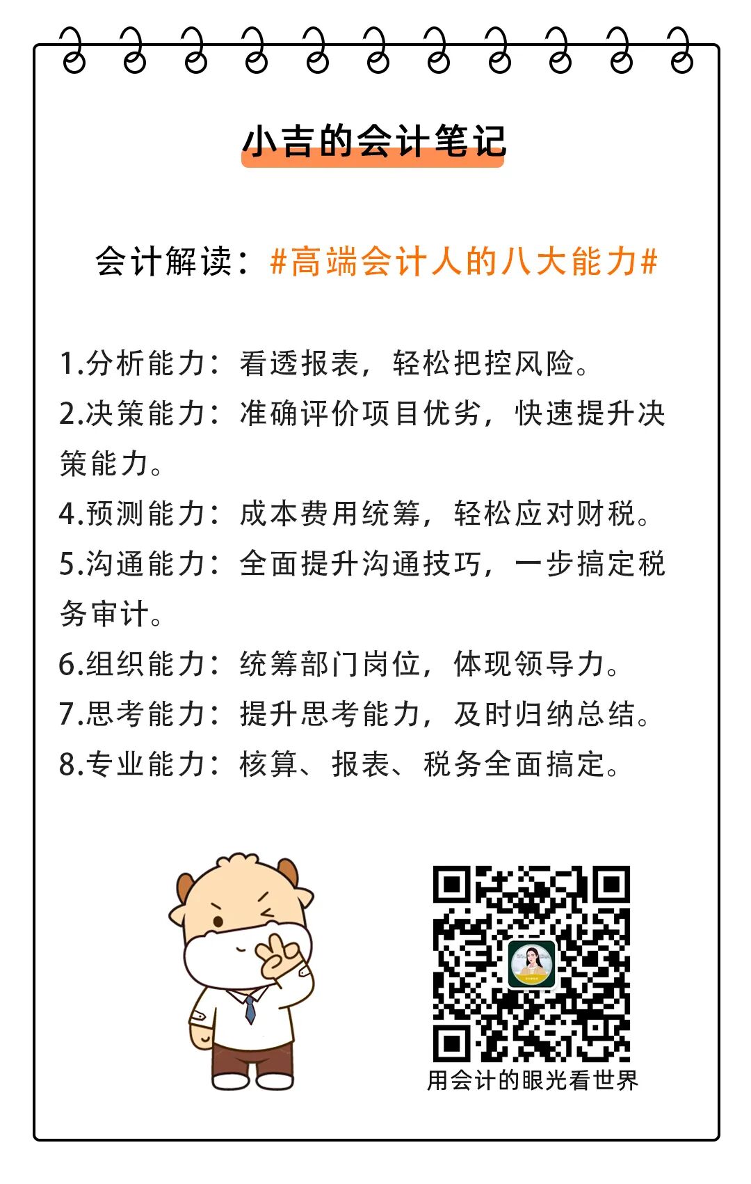 身为会计,我们该怎么办呢?一起来看看会计人应具备的八大能力:
