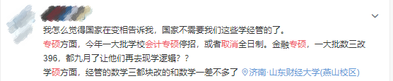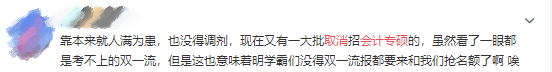 网友三:会计专业本来就人满为患,这些知名院校取消会计专硕,后面的竞争会不会越来越大。