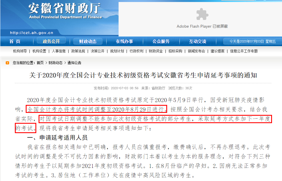 安徽省发布了初级考试可以顺延到下一年的消息!
