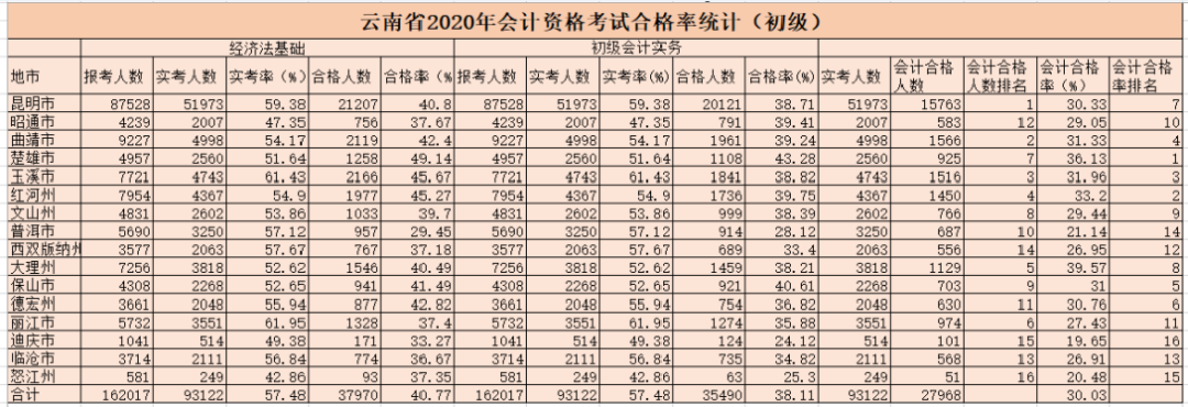 刚刚,网上曝光一张云南省各地区2020初级成绩通过率表格,从数据上来看,云南省初级通过率远高于往年,甚至有的地区高达36%的通过率!